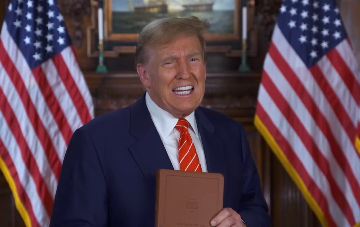 In a quick cash-grab to foot the bill for his legal troubles, the former president has teamed up with country singer Lee Greenwood to peddle branded scripture.