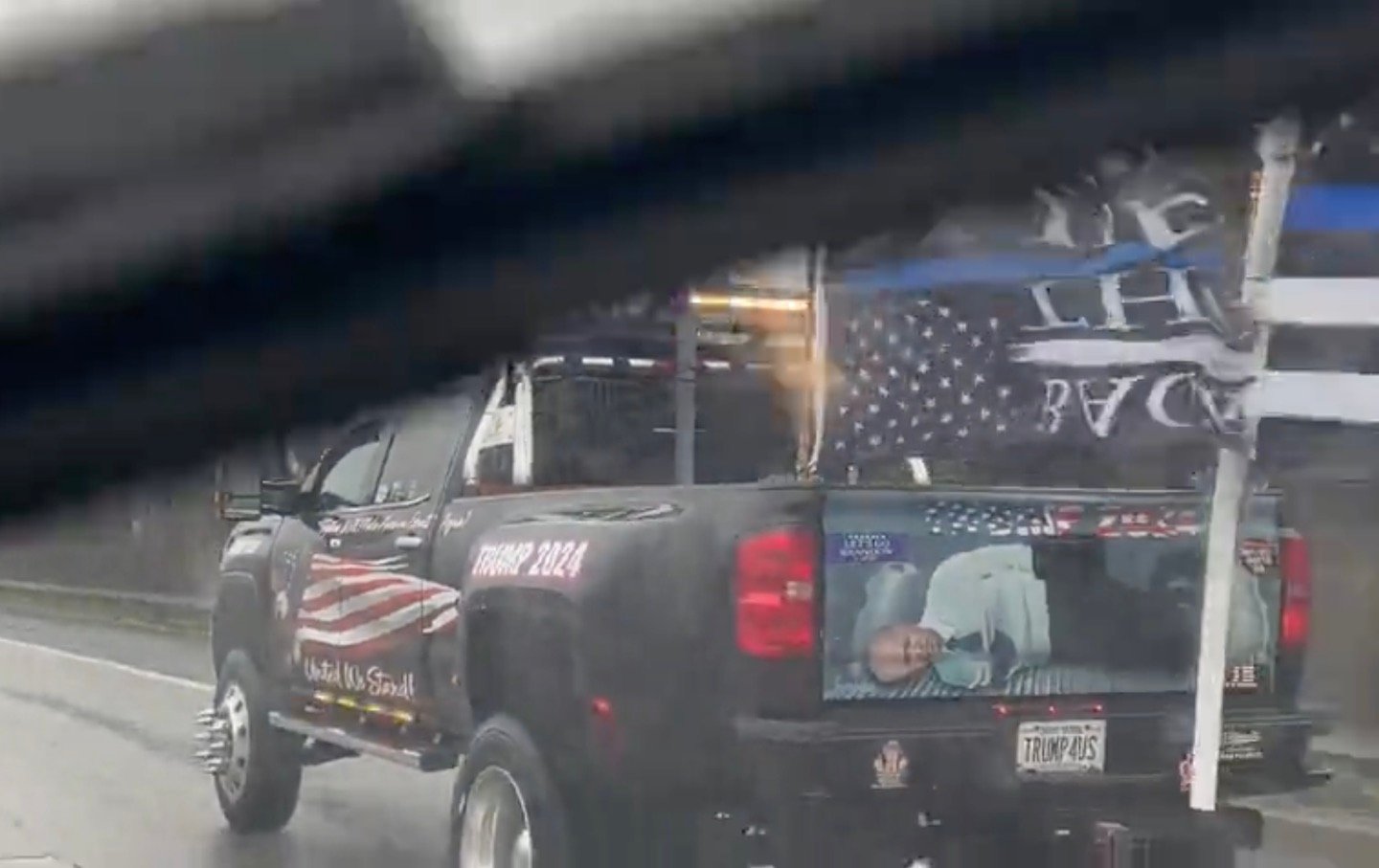 Just a few days after circulating his Holy Week pitch for God Bless the USA Bibles, former president Donald Trump marked Good Friday in high MAGA fashion, by posting a video to his Truth Social account showing his successor, Joe Biden, hog-tied on the gate of a pickup truck. The video was apparently shot en route to the memorial for fallen New York City Policeman Jonathan Diller on Long Island—an event that Trump attended so as to showcase his popularity with the police on the same day Biden attended a lavish Manhattan fundraiser featuring former presidents Bill Clinton and Barack Obama.
