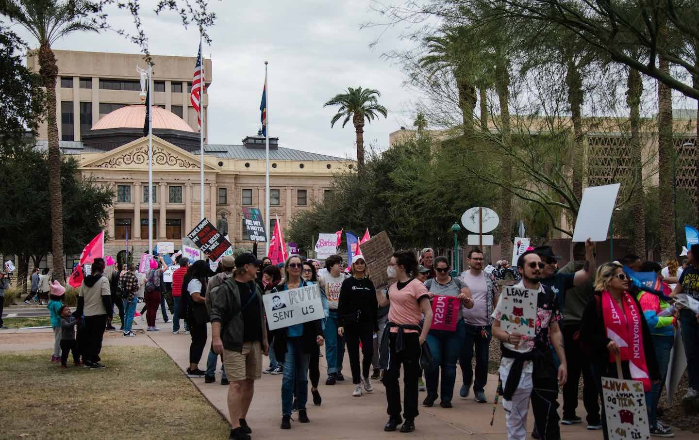 Demonstrators during a Women’s March rally at the Arizona State Capitol in Phoenix, AZ, in January 2024.