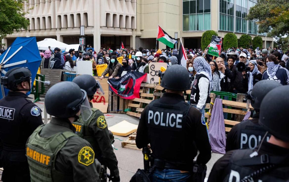 Police officers clash with pro-Palestinian demonstrators at the University of California at Irvine on May 15, 2024.(Qian Weizhong / VCG via Getty Images)