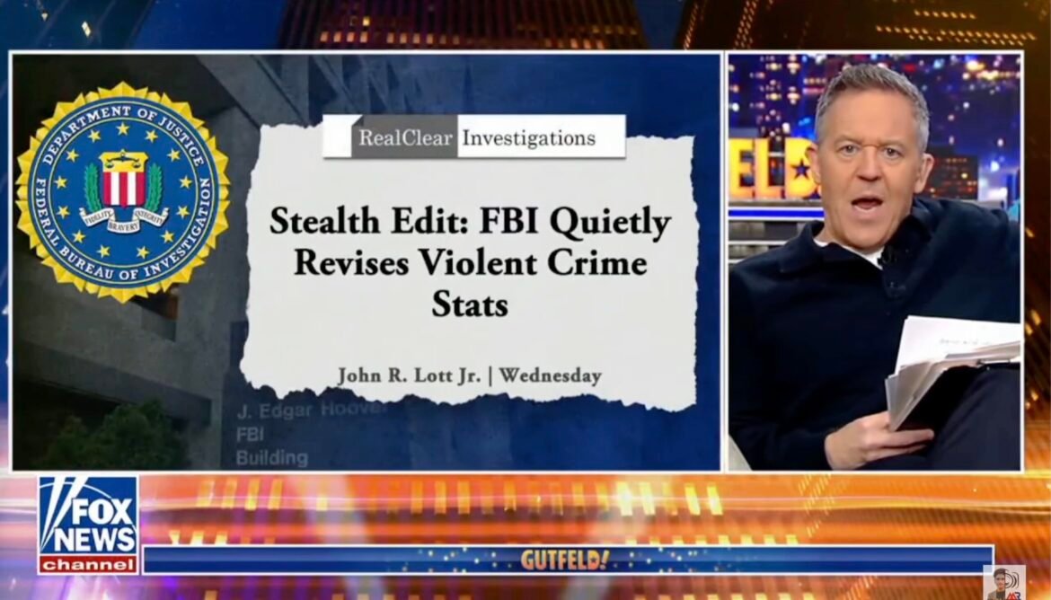 https://rumble.com/v5j3631-fox-news-gutfeld-mentions-our-research.html Fox News’ Gutfeld! discussed our Real Clear Investigation piece on the FBI and violent crime. Dr. Lott’s new investigative piece at Real Clear Investigations is here: “Stealth Edit: FBI Quietly…