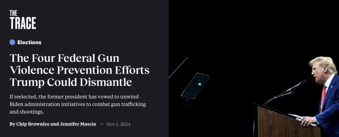 Chip Brownlee and Jennifer Mascia, “The Four Federal Gun Violence Prevention Efforts Trump Could Dismantle,” The Trace, November 1, 2024.