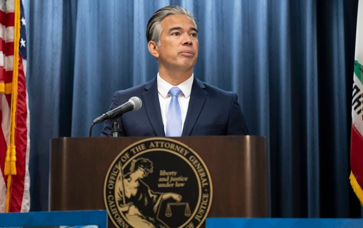 California Attorney General Rob Bonta speaks during a press conference in Los Angeles.