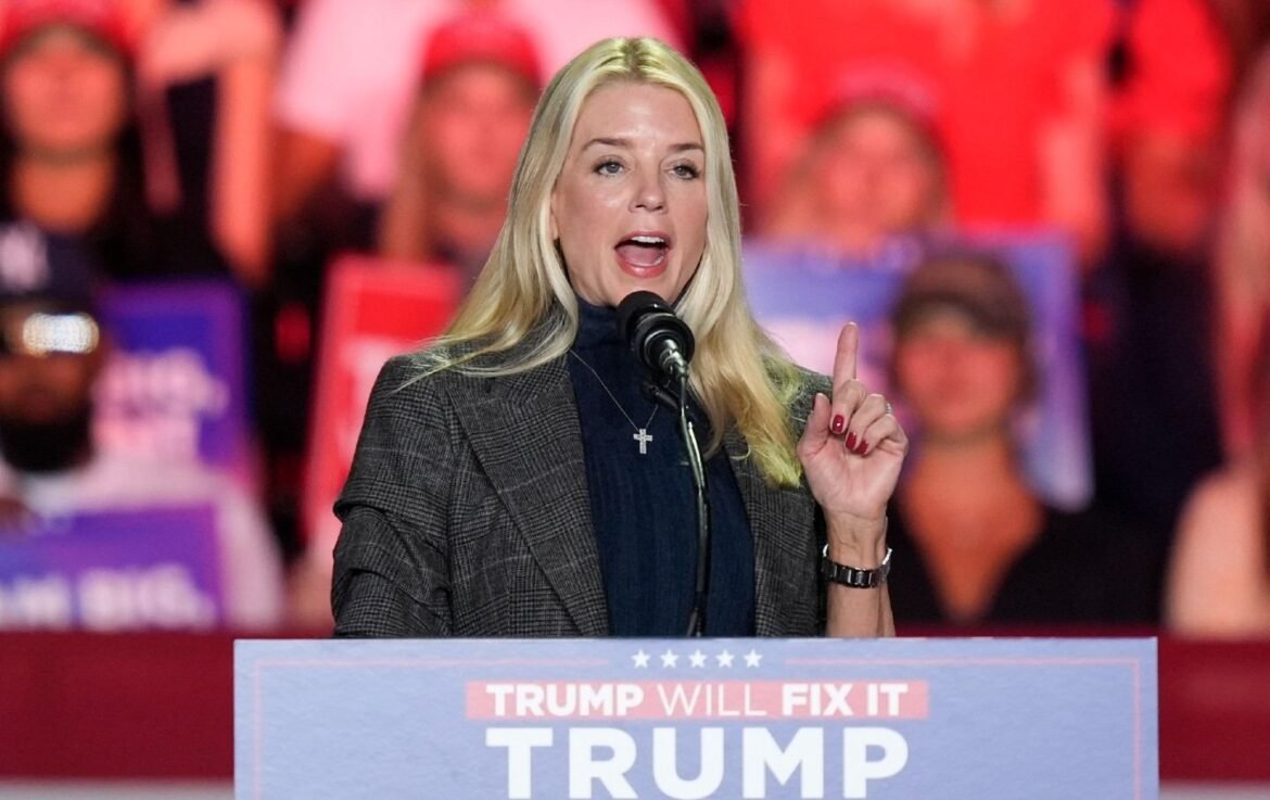 Former Florida attorney general Pam Bondi speaks before Republican presidential nominee former president Donald Trump at a campaign rally at First Horizon Coliseum, November 2, 2024, in Greensboro, North Carolina.