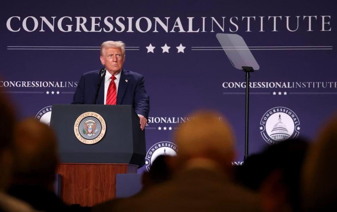 US President Donald Trump addresses the 2025 Republican Issues Conference at the Trump National Doral Miami on January 27, 2025, in Doral, Florida.