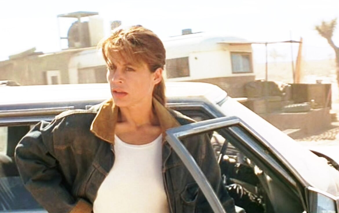 When we meet Sarah Connor (played by Linda Hamilton) in 1984, she is weak. She’s a classic Hollywood “damsel in distress” updated for the 1980s with big hair and spunkiness. She spends most of the first movie running and hiding, and nearly ensures her doom by calling her mother. She and the soldier bang, and the soldier sacrifices himself to try to destroy the Terminator. He fails to kill it, but Sarah is able to lure the robot into a hydraulic press and… terminate it. The movie ends with her visibly pregnant with the soldier’s baby, who will become John Connor, and is leaving audio tapes for him about what the world was like before the tragedy she now knows is coming. Little does she know that Schwarzenegger will be back, more or less as a good guy.