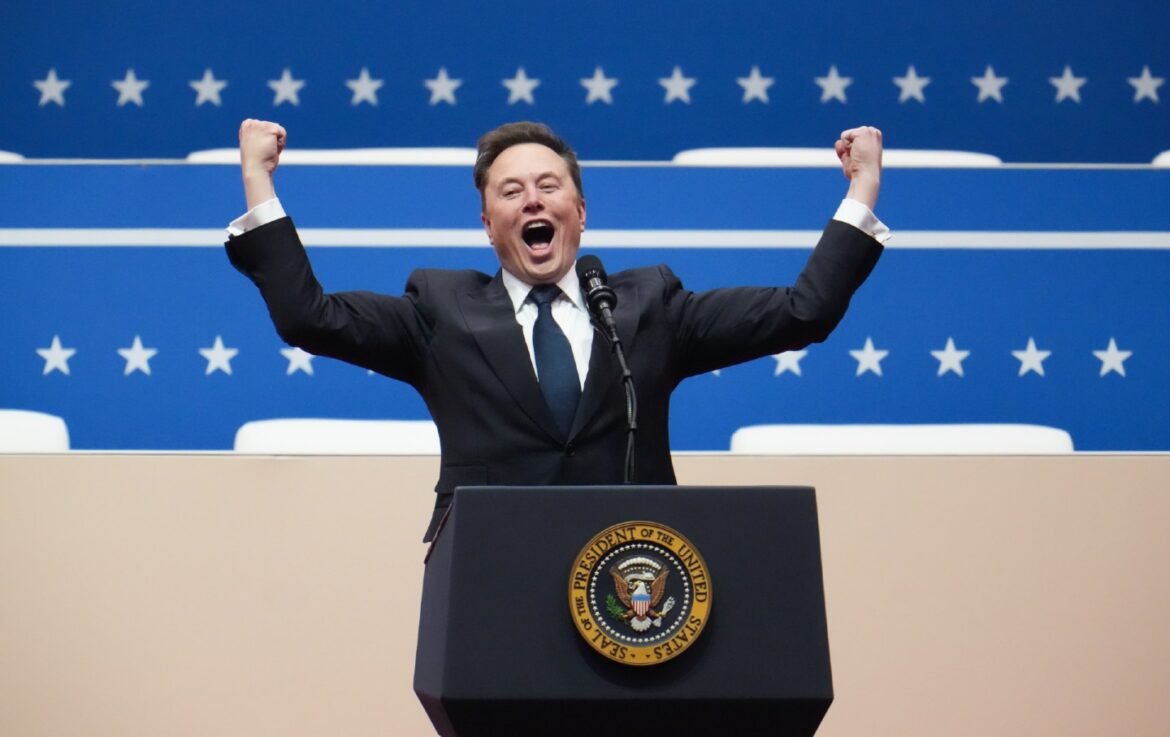 Elon Musk is very excited to speak during an inauguration event at Capital One Arena on January 20, 2025, in Washington, DC.