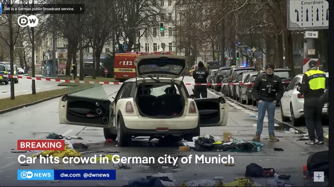 — “Bavaria was hit by an attack only three weeks ago, when a toddler and a man aged 41 were killed in a stabbing at a park in the town of Aschaffenburg. It soon emerged that the suspected attacker was an Afghan national with suspected jihadist sympathies, and Olaf Scholz had called on authorities at the time to explain why he was still in Germany.” Maia Davies, “At least 28 injured after car drives into crowd in Munich,” BBC News, February 13, 2025.