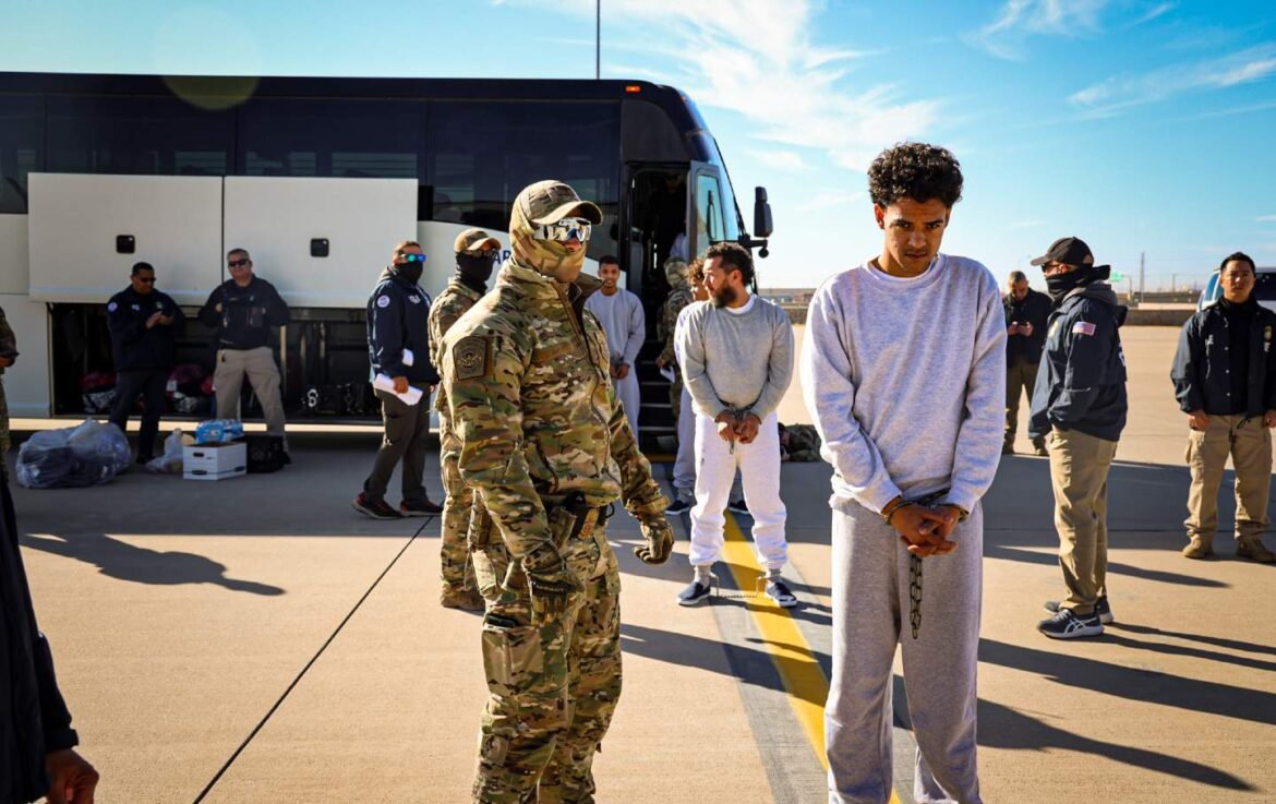 The Department of Homeland Security released photos on February 4 of the first flight of migrants to Guantánamo Bay, Cuba.