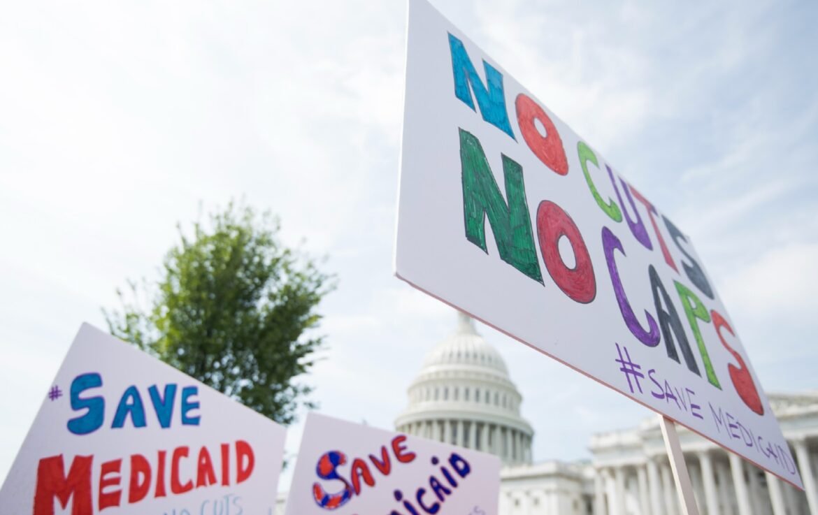 Supporters hold up “Save Medicaid” signs outside the Capitol during the Republicans’ attempt to cut Medicaid during Trump’s first term in September 2017.(Bill Clark / CQ Roll Call)