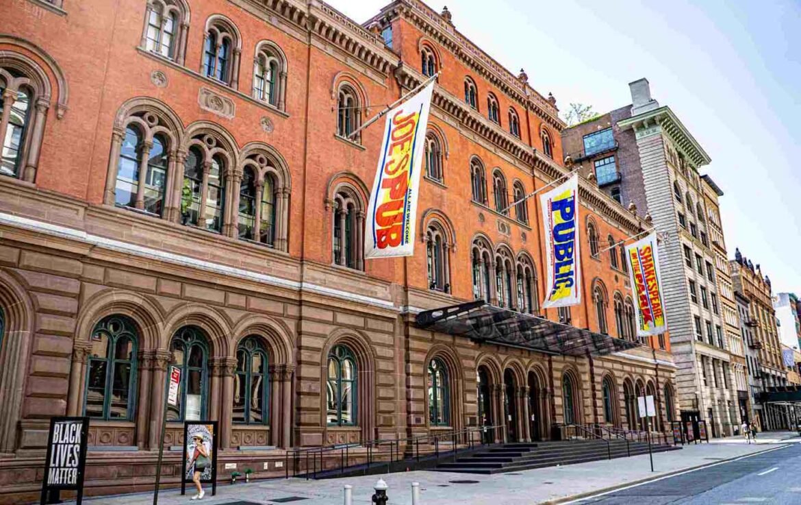 Not bowing down: New York’s Public Theater (pictured) along with the NY Theatre Workshop, New Haven’s Long Wharf, and Portland’s Center Stage issued a joint statement promising to “continue to uplift the work of transgender, non-binary, and queer artists.”(Education Images / Universal Images Group via Getty Images)