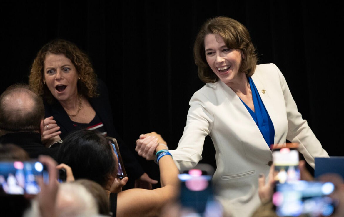 Dane County Circuit Court Judge Susan Crawford (R) greets supporters after her victory in the race for Wisconsin Supreme Court justice during an election night event on April 01, 2025 in Madison, Wisconsin.