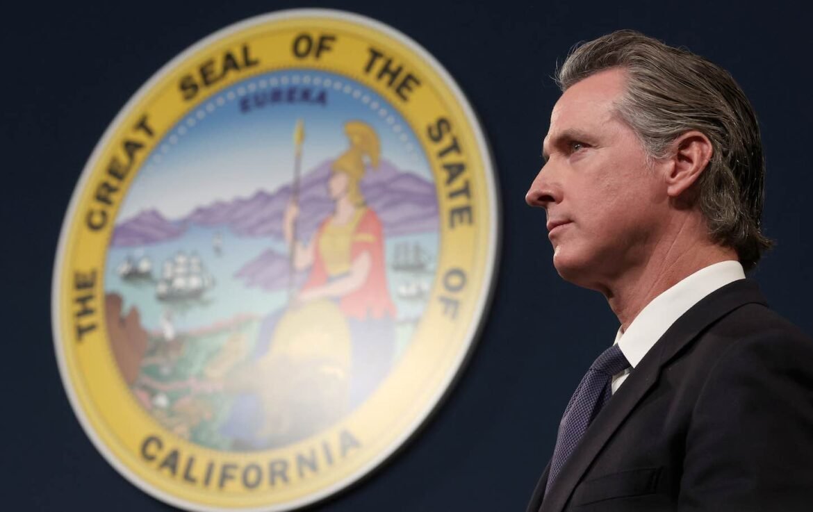 California Governor Gavin Newsom looks on during a press conference on February 1, 2023, in Sacramento, California.