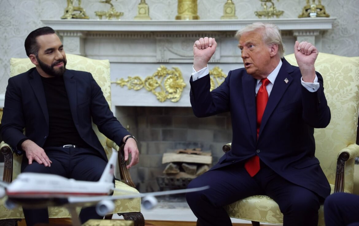Donald Trump meets with President Nayib Bukele of El Salvador in the Oval Office of the White House April 14, 2025