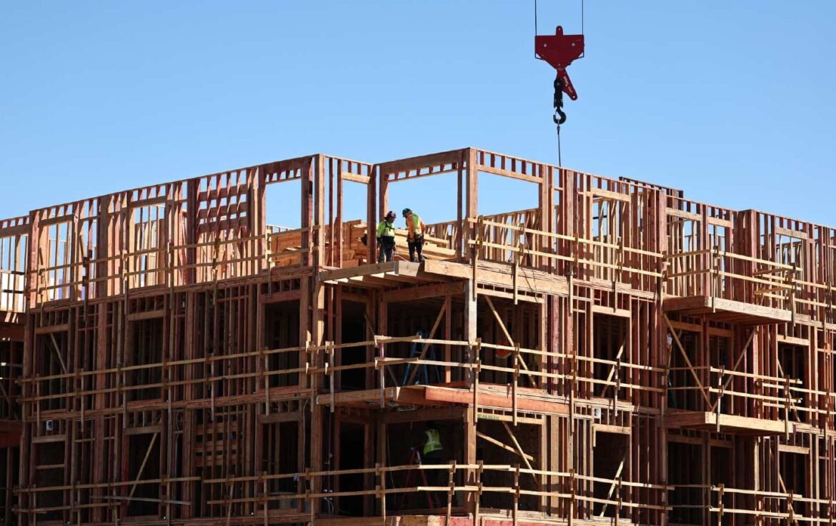 Construction continues on a mixed-use apartment complex that will hold more than 700 units of housing and 95,000 square feet of commercial space on August 20, 2024, in Los Angeles.