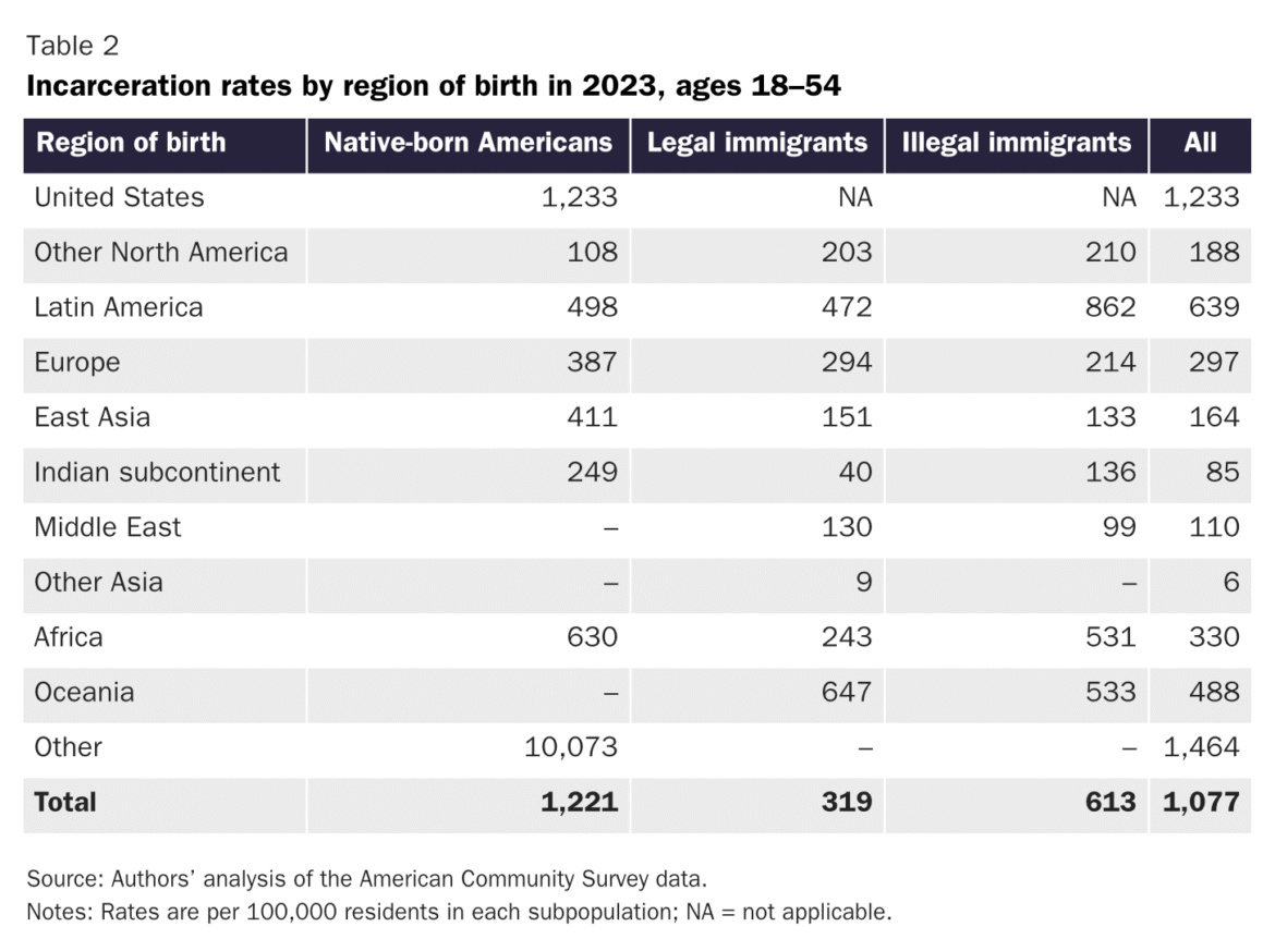 1. Undocumented immigrants are often deported directly from prison before completing their sentences. For example, in early 2025, approximately half of the individuals highlighted in ICE’s enforcement actions were already incarcerated at the time of their arrest. The problem that this creates is that illegal aliens will be underrepresented relative to their actual share of the criminals in the prison population. There is also the Rapid Removal of Eligible Parolees Accepted for Transfer (Rapid REPAT) program allowed noncitizens convicted of nonviolent crimes to be released from prison early and voluntarily deported to their home countries.
