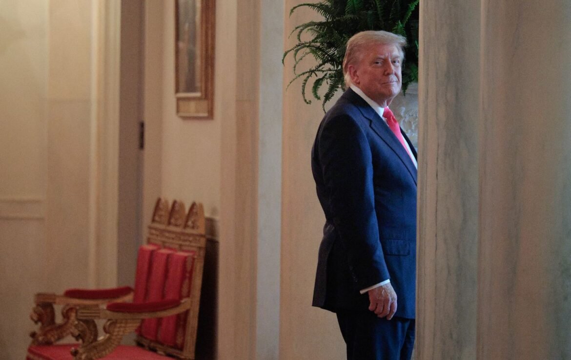 Donald Trump pauses in the Cross Hall to listen to the band at the conclusion of the “One, Big, Beautiful” event