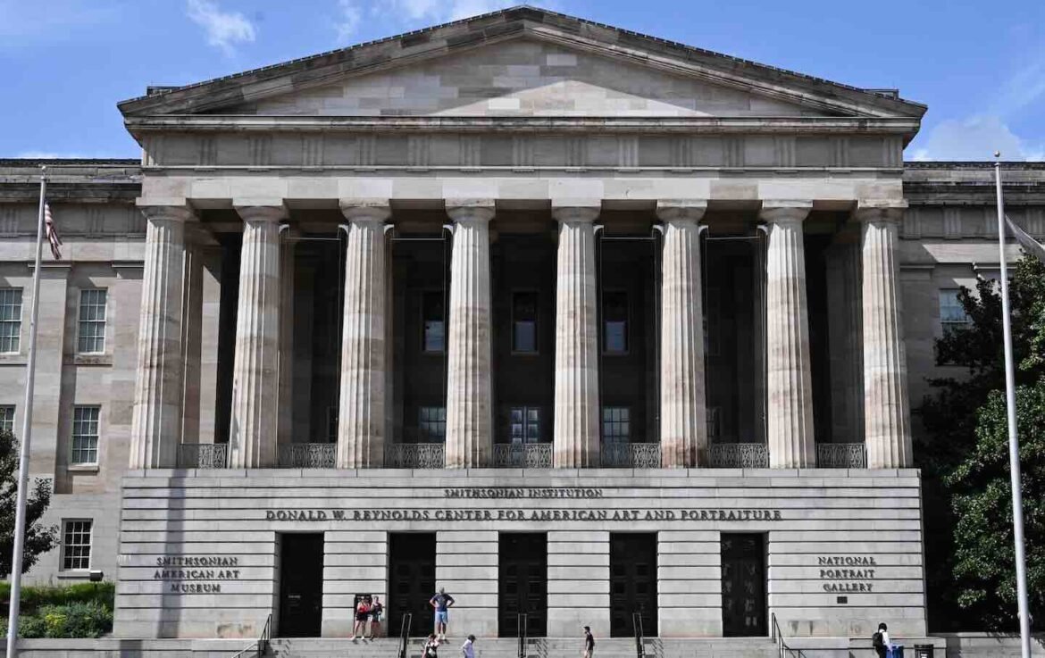 Visitors walk outside the Smithsonian American Art Museum and the National Portrait Gallery on August 14, 2025.