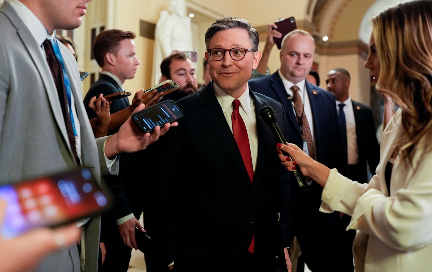 House Speaker Mike Johnson, a Republican from Louisiana, speaks to members of the media at the US Capitol in Washington, DC, on July 3, 2025.
