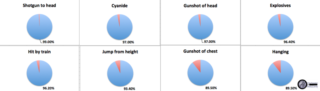 Suicides should also be excluded because the common claim is that if guns are eliminated, people either won’t try to commit suicide or cannot do it successfully. Yet, in places where guns are banned, total suicide rates remain unchanged — people change how they commit suicide. From 2019 to 2023, excluding firearm suicides would reduce numbers from the CDC by 27 to 39 percent. With the FBI murder data, firearm suicides make up 31 to 46 percent of the total. So, for example, in 2020, for those under 20, removing suicides would reduce the number of firearm deaths using the numbers from the CDC from 4,253 to 2,960 and using the FBI murder rate data from 3,405 to 2,112. There are many other very effective ways to commit suicide, such as hanging, walking in front of a train, jumping from a height, using explosives, or cyanide (source here). More on suicides available here.
