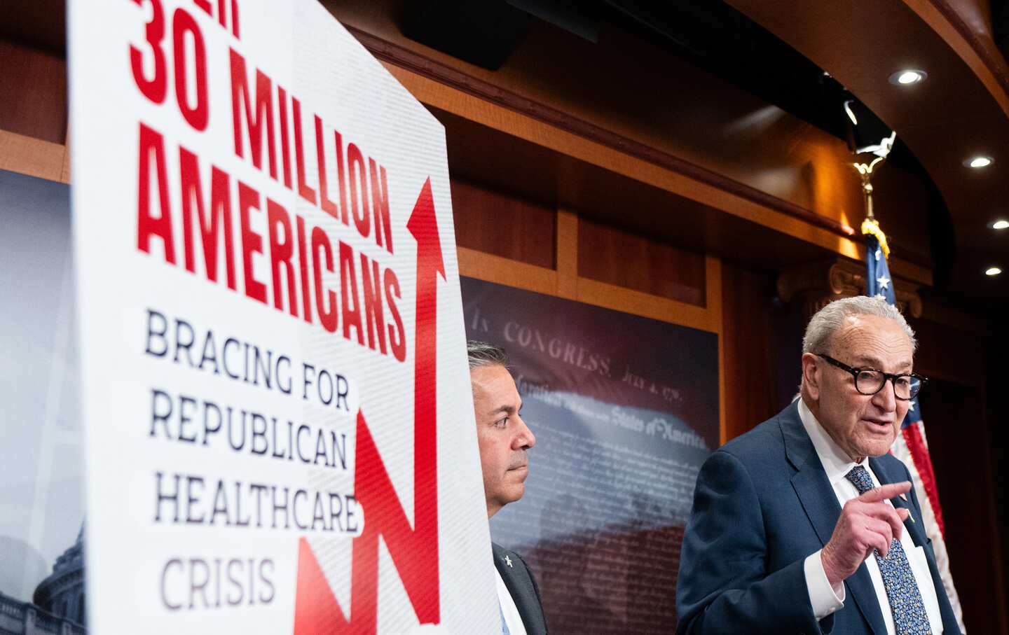 Senate Minority Leader Chuck Schumer speaks during the Senate Democrats’ news conference on extending expiring Affordable Care Act tax credits in the U.S. Capitol on December 4, 2025.