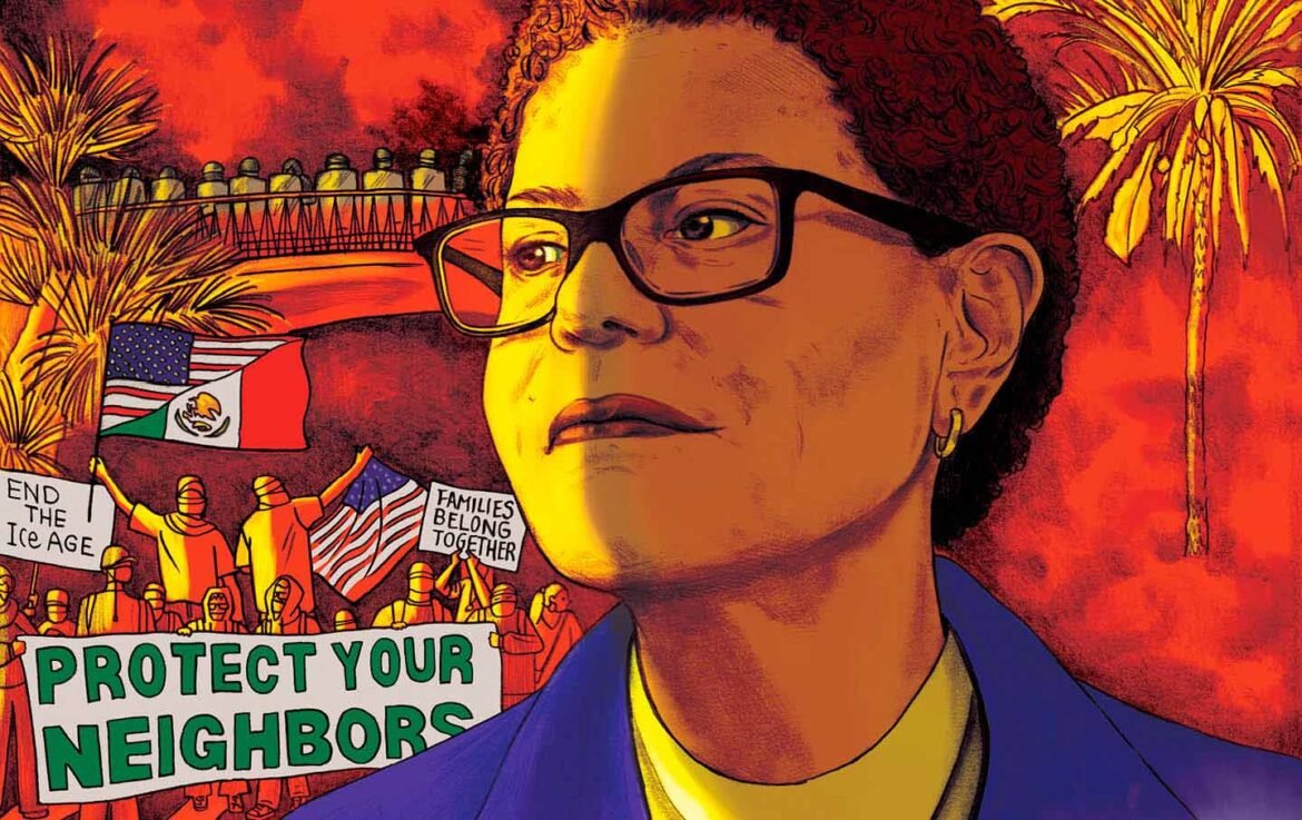 Karen Bass: The first part of the year, we had the worst natural disaster in California’s history. And we were in our recovery period when, on June 6, out of nowhere, the ICE raids started. ICE descended on multiple locations at the same time and just took people away day after day. They drove regular cars but with darkened windows, sometimes no license plates. They would jump out of the cars, fully masked, armed with rifles. They would literally snatch Latinos off the street, which is why, in our city, we refer to it as “the hunting of Latinos.” And this sowed absolute terror. An immediate protest started because, in our city, we are fortunate to have a well-established immigrant-rights infrastructure with organizations that are over 40 years old.