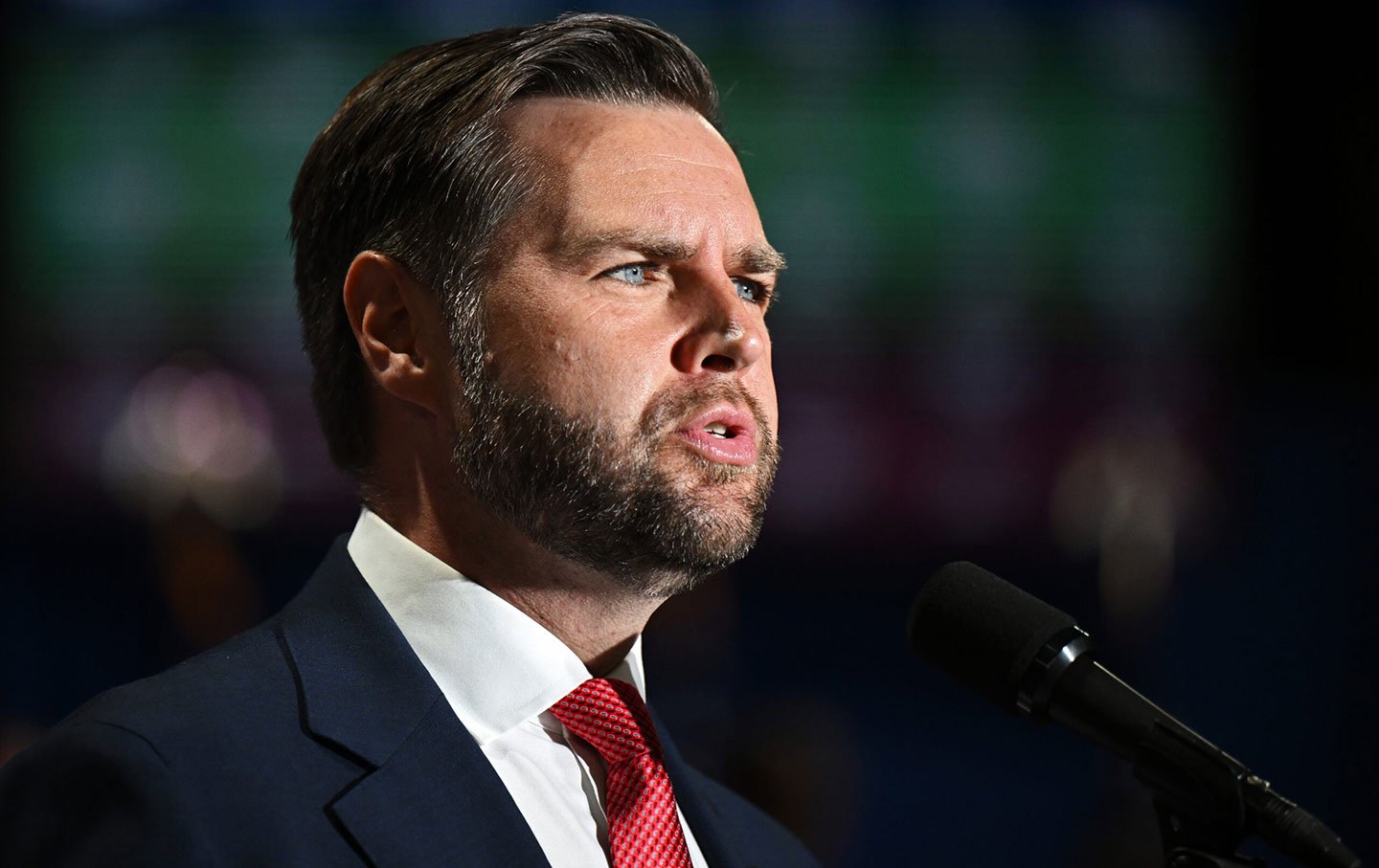 Republican vice-presidential candidate Senator JD Vance (R-OH) delivers remarks during a campaign rally at 2300 Arena on August 6, 2024, in Philadelphia, Pennsylvania.